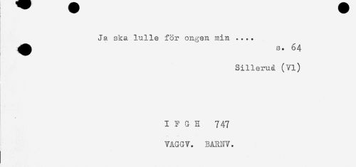 //// Ja ska lulle för ongen min .... //// s. 64 //// Silleruå (Vi) //// I G H 747 //// VAGGV. BARNV. //// t ////