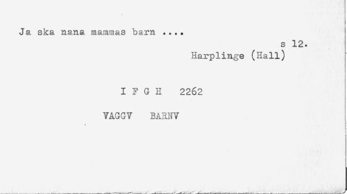 //// Ja. ska nana matamas barn .... //// s 12. //// Harplinge (Hall) //// IFGH 2262 //// VAGGV BARNV //// * ////
