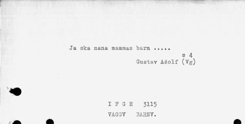 //// Ja ska nana mammas barn..... //// S 4 //// Gustav Adolf (Vg) //// i //// I F G H 3115 //// VAGGV BARNV. ////