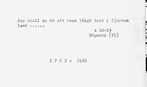 //// Jag skall nu ut att r&sa långt bort i fjärran L //// land ...... //// s 18-19 ^ //// Högerud (Vi) E //// H //// IFGH: 2186 ! ////