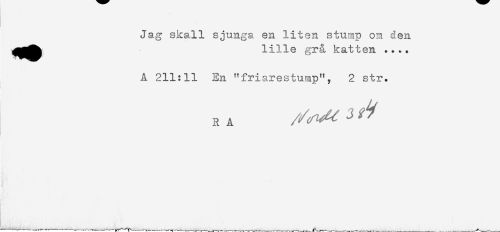 //// Jag skall sjunga en liten stump om den //// ^^ lille gra katten .... //// A 211:11 En "friarestump", 2 str. //// RA //// ^ ---—--"----^r--.,-—___------- ////