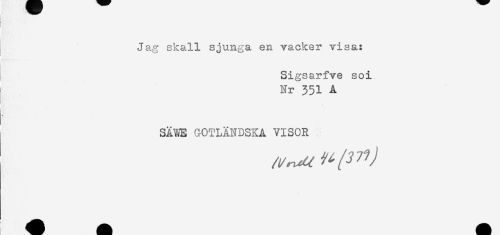 //// Jag skall sjunga en vacker visa: //// i //// Sigsarfve soi //// I Nr 351 A //// t //// * //// SÄYiE GOTLÄNDSKA VISOR ////