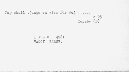 //// Jag skall sjunga en visa för dej ...... //// s 25 //// Torsby (B) //// IFGH 4261 //// VAGGV BARNV. ////