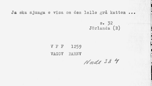 //// Ja ska sjunga e visa om den lelle grå katten ... ! //// s. 32 //// Jörlanda (B) ] //// ! //// s //// V F F 1259 T //// VAGGV BARNV ////
