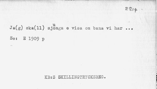 //// 2g,p. ' //// Ja(g) ska(ll) sjonga e visa om bana vi har ... //// Se: E 1909 p //// KB:S SKILLINGTRYCKSREG. ////