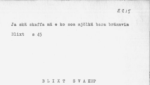 //// Ja skå skaffa mä e ko som mjölka bara brännvin //// Blixt s 45 //// BLIXT S V Å HOP ////