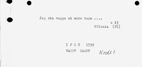 //// ; i //// ^^ Jag ska vagga mi mors barn .... //// ^ s 13 //// Rölanda (Dl) //// i //// I F G H 1730 //// VAGGV BARNV / ////