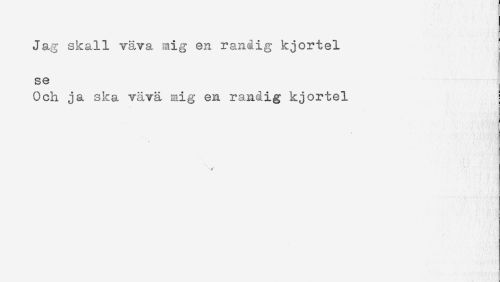 //// Jag skall väva mig en randig kjortel //// se //// Och ja ska vävä mig en randig kjortel //// < < ////