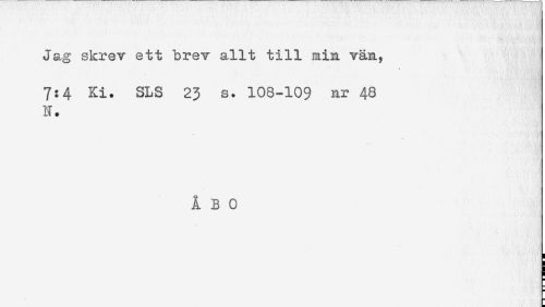 //// Jag skrev ett brev allt till min vän, //// 7:4 Ki. SLS 23 s. 108-109 nr 48 //// N. //// ÅBO ////