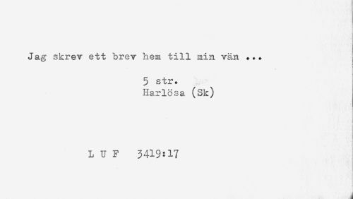 //// Jag skrev ett brev hem till min vän ... //// 5 str. //// Harlosa (Sk) //// . //// LUF 3419:17 ////