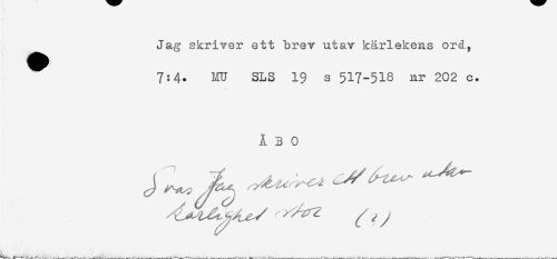 //// Jag skriver ett brev utav kårlekens ord, //// T //// 7:4. 1.111 SLS 19 s 517-518 nr 202 c. //// ÅBO //// J ^^ ^ ////