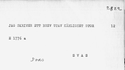 //// JAG SKRIVER ETT BREV UTAV KÄRLIGEET STOR 12 //// E 1776 a //// S V A S //// J* ////