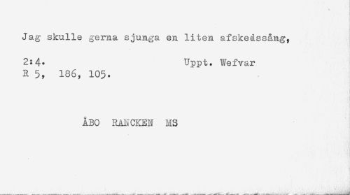 //// Jag skulle gerna sjunga en liten afskeåssång, //// 2:4- Uppt. Wefvar //// R 5, 186, 105. //// ÅBO RANCKEN MS //// ' * . *' ////