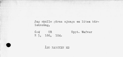 //// t //// Jag skulle gärna sjunga en liten kär- //// lekssång, //// 6:4" OR Uppt. Wefvar //// R 5? 136, 104. //// t //// ^ ÅBO RANCKEN MS ////