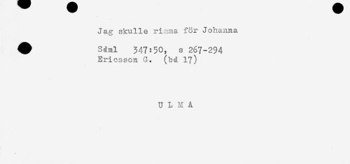 //// Jag skulle riiima för Johanna //// ^ Sgml 347:50, s 267-294 //// Ericsson G. (bå 17) //// U L M A ////