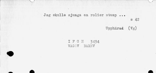 //// Jag skulle sjunga en rolier stump ... //// s 42 //// Upphäraå (Vg) //// I F G H 3494 //// VAGGV BARNV ////
