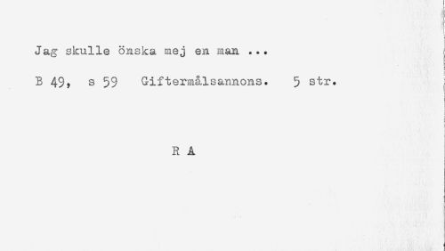 //// Jag skulle önska sej en man ... //// t- //// B 49? s 59 Giftermålsannons. 5 str. j //// t //// i //// f //// * //// t //// R A //// < //// j ////