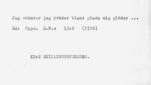 //// Jag skämtar jag kväder bland glada mig gläder ... //// Se: Upps. Z.P.s 15:8 (1728) //// KB:S SKILLINGTRYCKSREG. ////