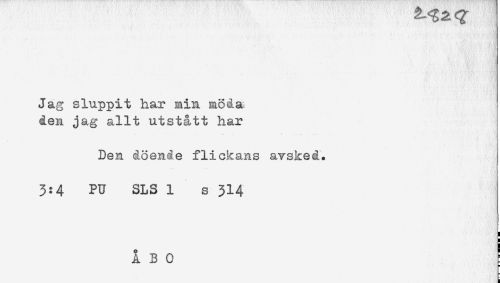 //// Jag sluppit har min möåa //// åen jag allt utstått har //// Den döende flickans avsked. //// 3:4 PU SLS 1 s 314 //// ÅBO : ////