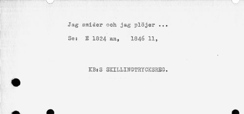 //// * - ( * - //// Jag smiåer och jag plöjer ... //// Se: E 1824 nn, I846 11, //// t //// * //// KB:S SKILLINGTRYCKSREG. //// - ' * * ////