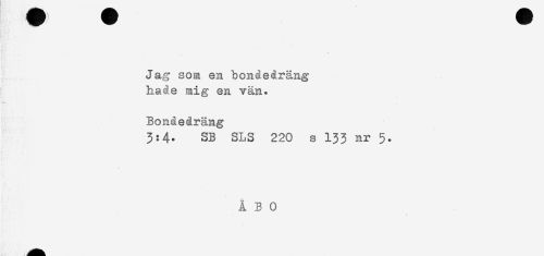 //// Jag som en bondedräng //// hade mig en vän. //// Bondedräng //// 3:4. SB SLS 220 s 133 ^ 3. ////