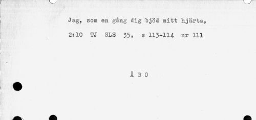 //// ! ' ' ' - ' ' * . . - - //// Jag, som en gång dig bjöd mitt hjärta, //// 2:10 TJ SLS 35, s 113-114 Rr Hl //// 1 //// % //// ÅBO ////