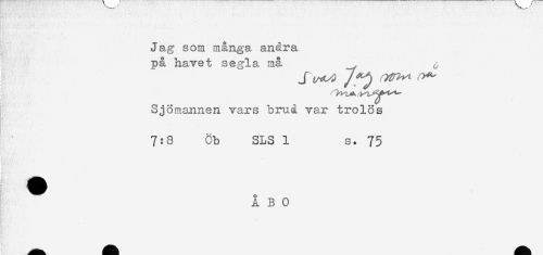 //// Jag som många andra //// på havet segla må ^ //// Sjömannen vars brud var trolös //// 7:8 Cb SLS 1 s. 75 //// * //// f . //// -'. * //// r ////