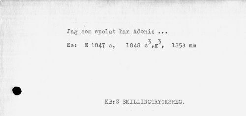 //// . . - //// Jag som spelat har Ädonis ... //// Se: E 1847 a, I848 c^g^? 1858 mm //// KB:S SKILLINGTRYCKSHEG. ////