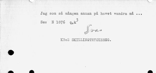 //// Jag som så mången annan på havet vandra må ... //// ^ Se: E 1876 q,k //// i //// KB:S SKILLINGTRYCKSREG. ////