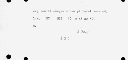 //// Jag som så mången annan på havet vara må, //// 1:4- MU SLS 50 s 47 nr 39- //// N- //// ÅBO ////