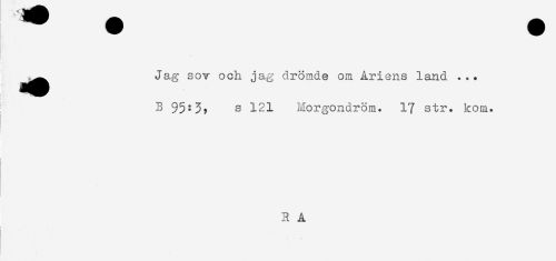 //// ^^^ Jag sov och jag drömde om Ariens land ... //// B 95:3? s 121 Morgondröm. 17 str. kom. //// ! //// R A ////