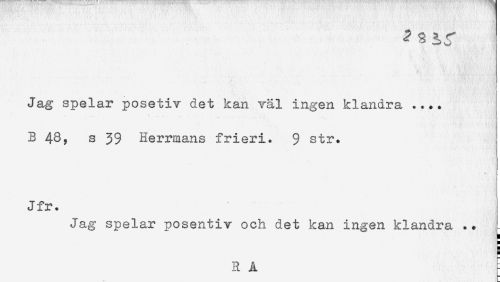 //// Jag spelar posetiv det kan väl ingen klandra .... //// B 43, s 39 Herrmans frieri. 9 str. //// Jfr. //// Jag spelar posentiv och det kan ingen klandra .. //// : //// a //// B //// R A [ ////