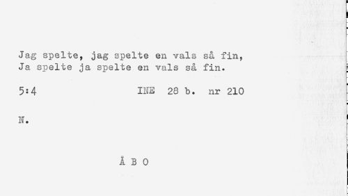 //// ! //// i //// Jag spelte, jag spelte en vals så fin, //// Ja spelte ja spelte en vals så fin. , //// 5:4 INE 28 b. nr 210 ' //// N. ////