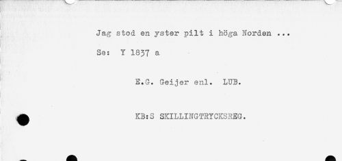 //// Jag stod en yster pilt i höga Norden ... //// Se: Y 1837 a //// i ^ //// E.G. Geijer enl. LUB. //// i //// * //// ^ KB:S SKILLINGTRYCKSREG. ////