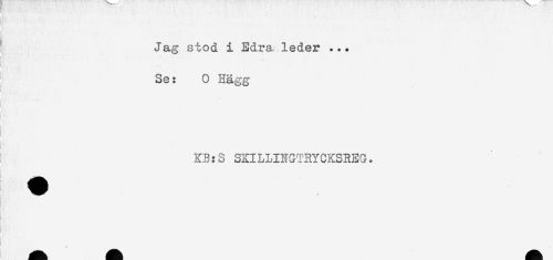 //// ; Jag stod i Edra leder ... //// I . //// ' Se: 0 Hägg //// I . ' //// KB:S SKILUNGTRYCKSREG. ////