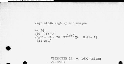 //// i //// t < //// Jagh stodh migh wp enn morgon //// nr 44 //// /DV 76:73/ //// /Gyllenmärs 70 KB 35. Sofia 1?. //// Älf 28./ ////