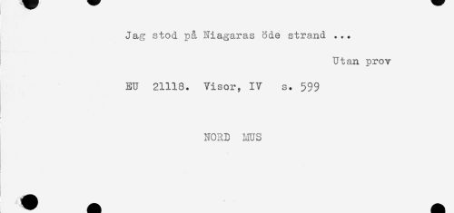//// Jag stod på Niagaras öde strand ... //// Utan prov //// EU 21118. Visor, IV s. 599 //// i //// NORD HUS ////