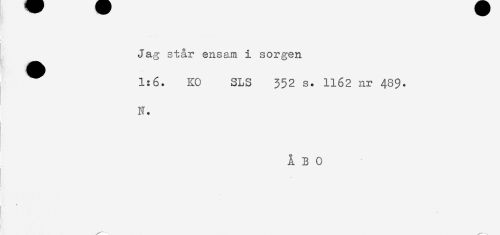 //// Jag står ensam i sorgen //// 1:6. KO SLS 352 s. 1162 nr 489. //// N. //// 1 //// ! //// ÅBO ////