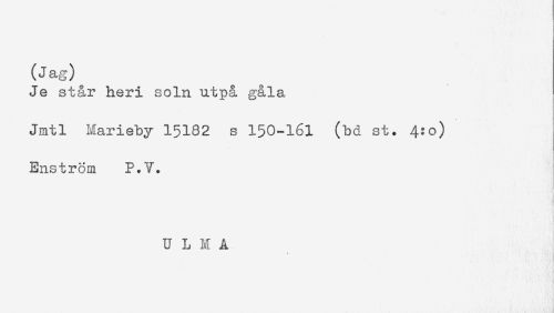 //// (Jag) //// Je står heri soln utpå gåla //// . //// Jmtl Marieby 15182 s 150-161 (bd st. 4:0) //// Enström P.V. //// u L n A ////