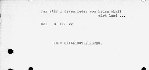 //// t //// t Jag står i dessa leder som hedra skall //// ) vårt land ... //// ^ Se: E 1888 vv //// C/.. ', . '. //// ( ' //// KB:S SKILLINGTRYCKSREG. ////