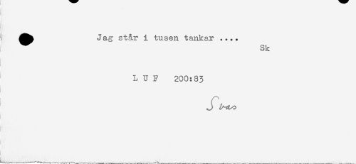 //// ^^ Jag st&r i tusen tankar .... //// Sk //// LUF 200:83 //// I //// ........^.............. .........^ ////