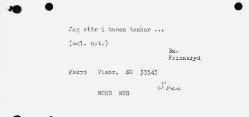 //// Jag st&r i tusen tankar ... //// (mel. not.) //// Sm. //// Frinnaryd //// Nskpt Visor, EU 33545 //// NORD MUS ////