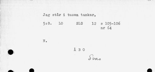 //// ) //// Jag står i tusen tankar, //// 5:3. LO SLS 12 s 105-106 //// nr 64 //// N. //// ^ ÅBO ////