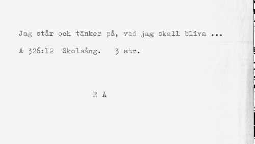 //// Jag står och tänker på. vad jag skall bliva ... //// A 326:12 Skolsång. 3 str. //// < //// ! //// R A ////