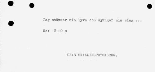 //// ^ Jag stämmer min lyra och sjunger min sång ... //// Se: U 20 s //// t //// KB:S SKILLINGTRYCKSREG. ////
