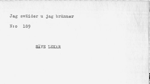 //// Jag sväider u jag bränner //// N:o 189 //// SÄ7E LEKAR ////