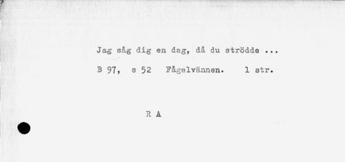 //// Jag såg dig en dag, då du strödde . .. //// ^ . < ....... . . //// B 97, s 52 Fågelvännen. 1 str. //// i. //// - //// i //// R A ////