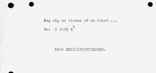 //// t. //// 3ag såg en blomma på en kvist ... //// 1 //// Se: E 182$ h //// ! //// KB:S SKILLINGTRYCKSREG. //// \ ////