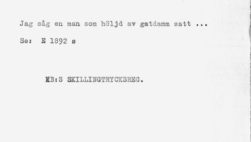 //// Jag såg en man som höljd av gatdamm satt ... j //// Se: E 1892 s //// XB:S SKILLINGTRYCKSREG. ////