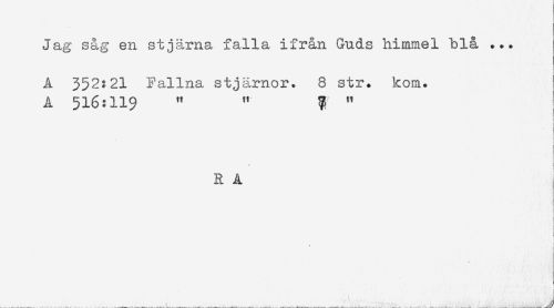 //// Jag s&g en stjärna falla ifrån Guds himmel blå ... //// A 352:21 Fallna stjärnor. 8 str. kom. //// A 516:119 " " % " //// ! //// ] //// R A //// t ////